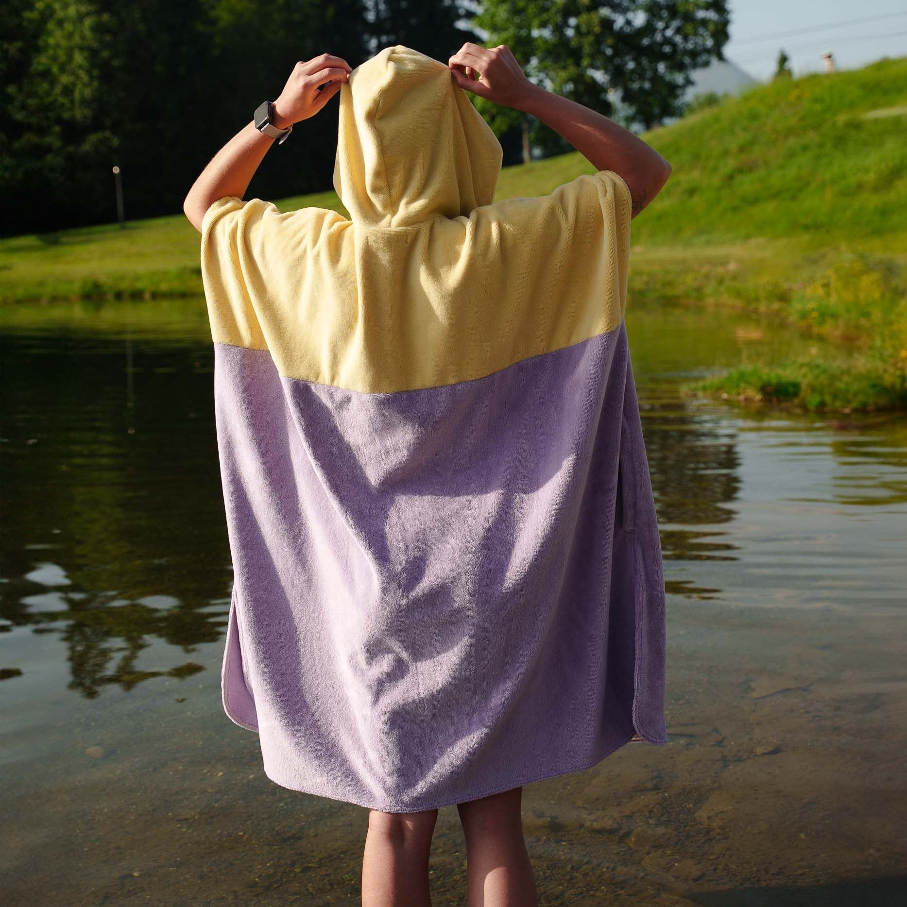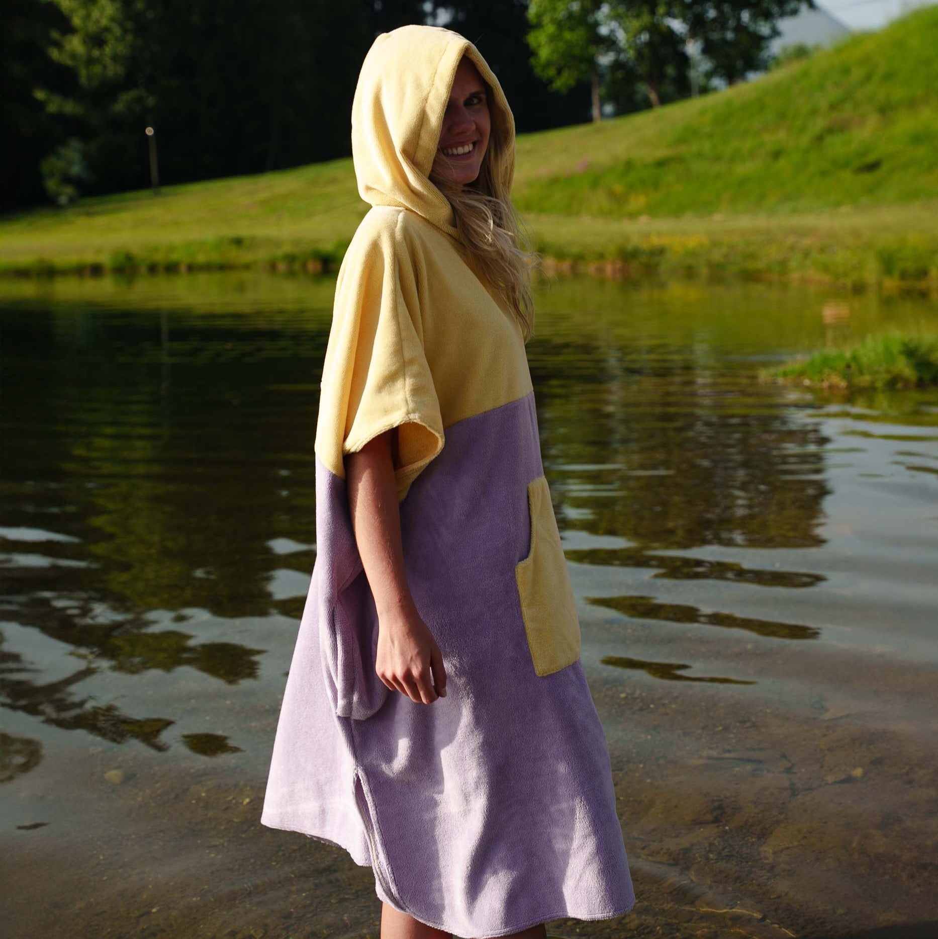 Un poncho (extrêmement) douillet, composé de coton et de bambou pour une absorption optimale, une douceur inégalée (même après plusieurs lavages!), et un séchage ultra-rapide. Il est composé d'une poche centrale, et surtout, de 2 fentes latérales pour faciliter le changement de tenue en toute discrétion.